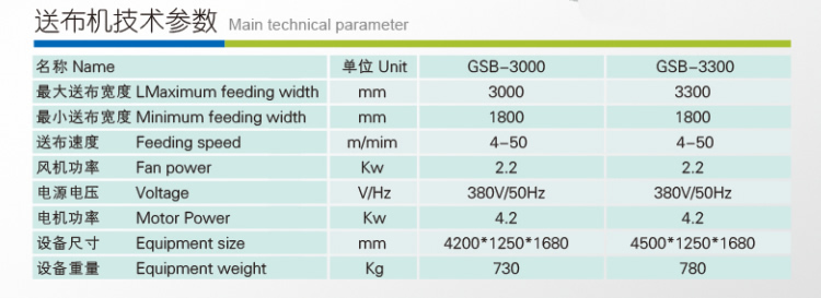 GSB送布机系列1、放在熨平机前面,提高安全性杜绝工伤,降低运行成本增加利润。2、降低工人劳动强度,单线减少人工两人,降低人工运行成本。3、高速自动送布,节省时间,提高工作效率,提高产量50%以上。降低蒸汽、电费人工运行成本,增加利润。4、预抽走部分水份,提高工作效率,降低能耗和工资,增加利润。5、同步吸风送布,紧紧吸住被套床单传送,杜绝床单或被套吸入底部不能送布,无论被套床单的送布成功。6、自动抖平,行业正反两面毛刷自动刷平,对床单、被套、枕套都能平整送进。